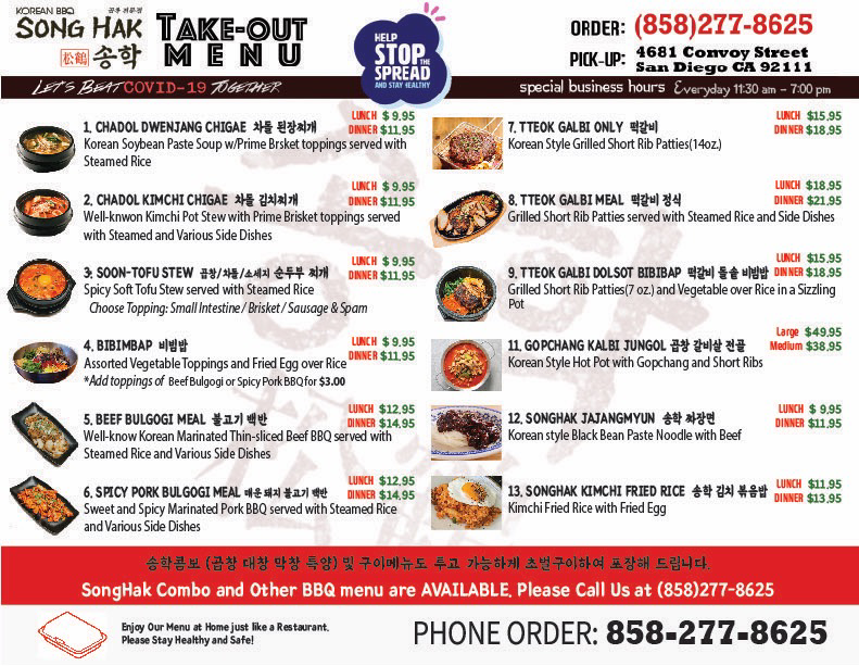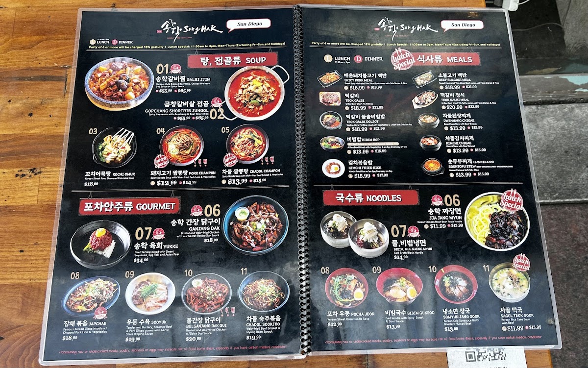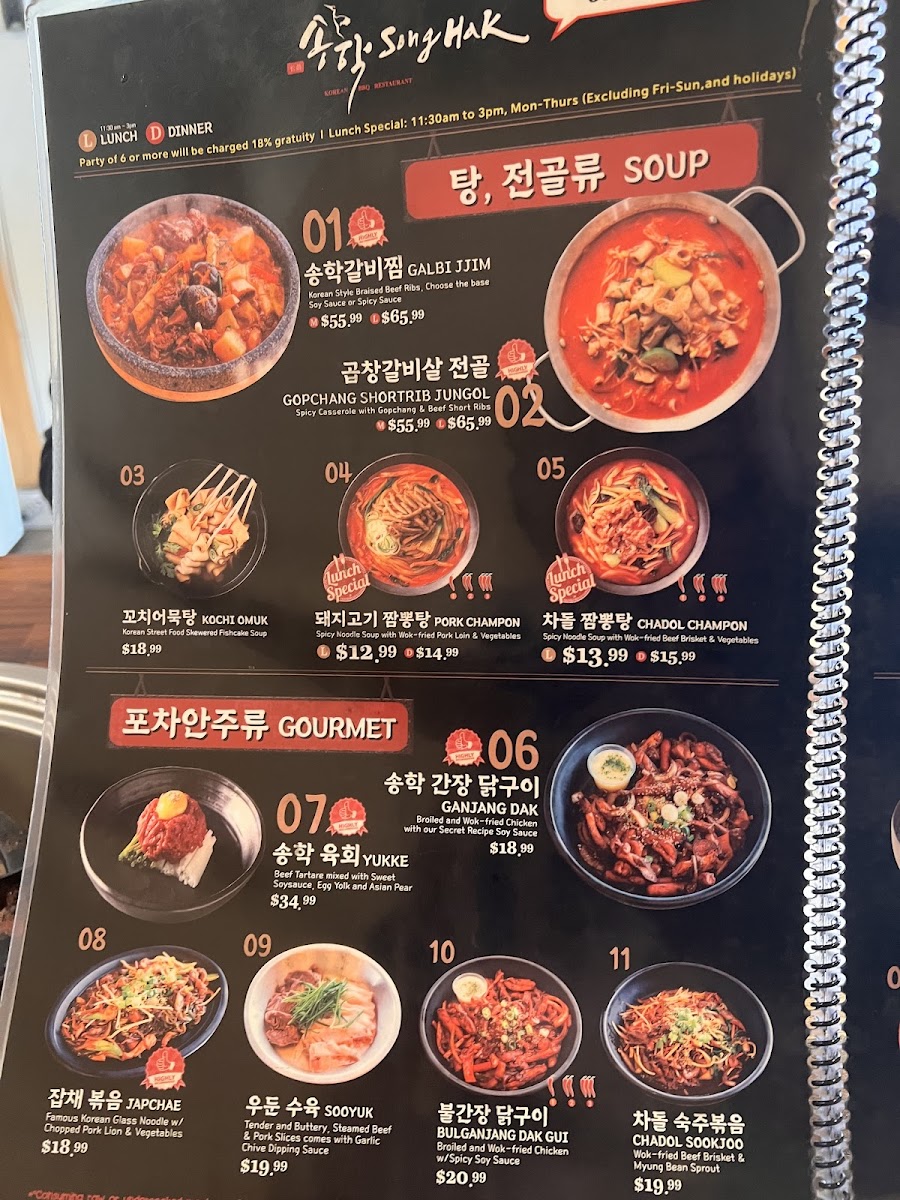 Overall, Song Hak Korean BBQ provides a diverse menu that caters to all tastes, whether you're after a hearty BBQ feast, a comforting soup, or a fresh noodle dish. The combination of traditional flavors and generous portions makes it a standout destination for Korean cuisine enthusiasts.