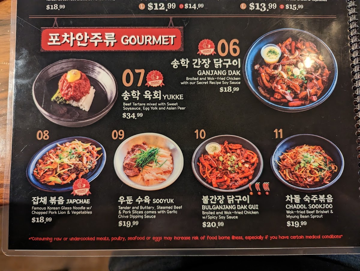 If you're in the mood for soup, the menu includes hearty options like Galbi Jjim and Gopchang Shortrib Jungol, which offer deep, rich flavors perfect for colder days. The noodle offerings, such as Jja Jang Myun (Lunch) and Pocha Udon, are also great choices, with the Bibim Guksoo being a popular cold noodle dish, ideal for warmer weather.